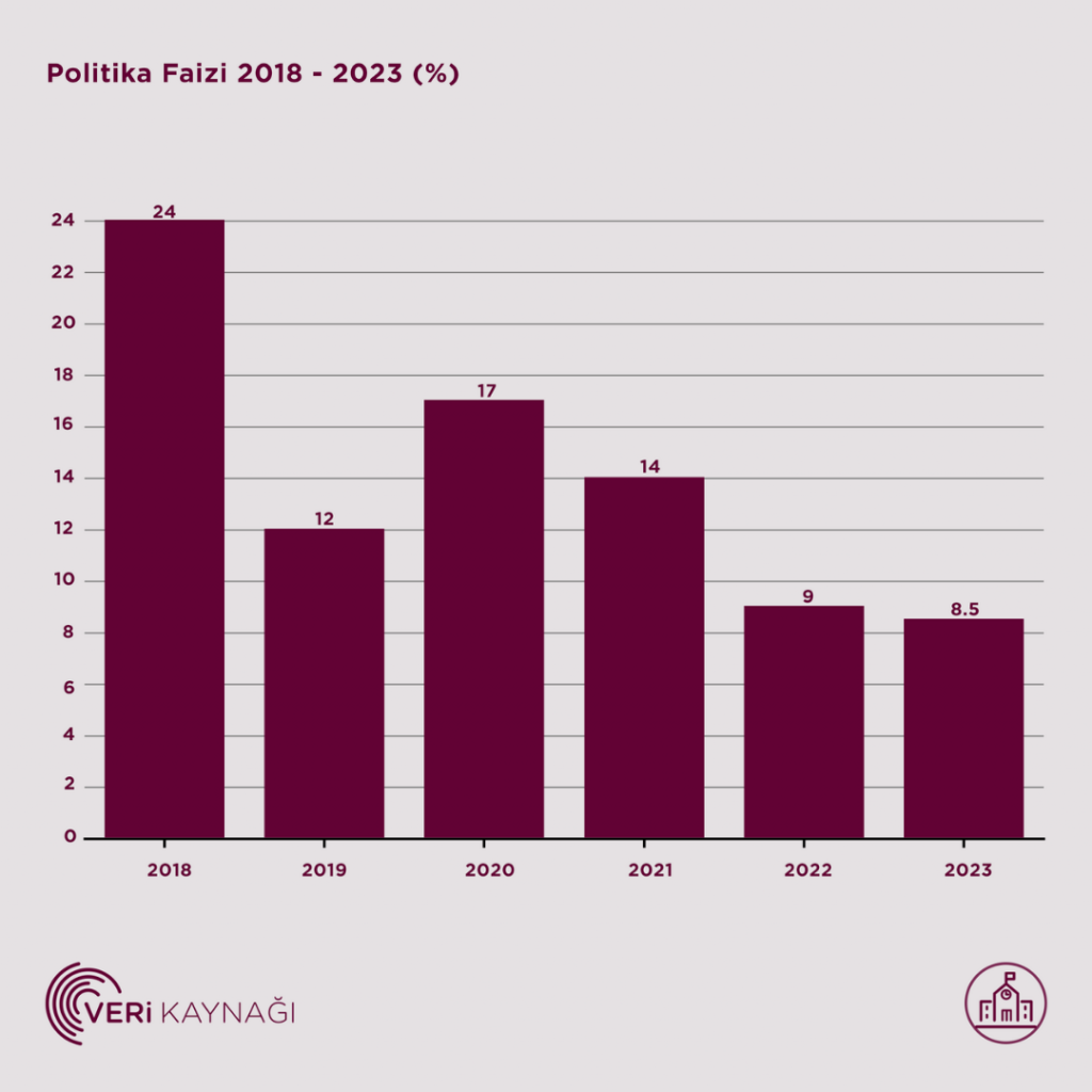 Türkiye Cumhuriyet Merkez Bankası (TCMB) Para Politikası Kurulu 24 Ağustos’ta politika faizini %17,5’ten %25 düzeyine yükseltti. Böylece yeni TCMB başkanı Hafize Gaye Erkan’ın göreve gelmesinden bu yana politika faizinde 1650 baz puanlık artış olmuş oldu. Politika faizi 2018 yıl sonunda yüzde 24, 2020'de yüzde 17, 2022'de ise yüzde 9 olarak kaydedilmişti.